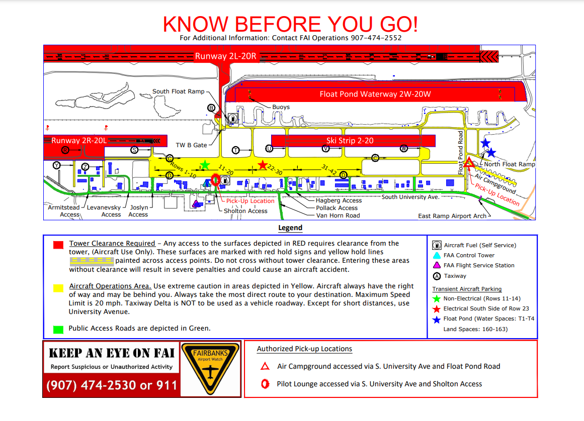 - To work with the managers of Fairbanks International Airport facilities and airspace, with the region’s pilots, and other groups to ensure the continued safety, usability, and neighborliness of aircraft use in the community.